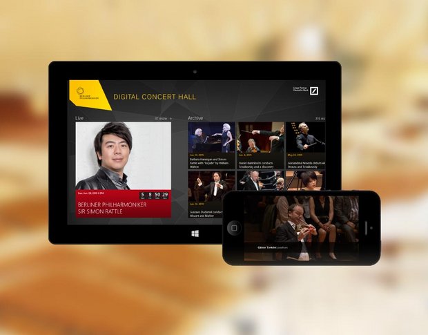 Apple Nutzer können sich die Konzerte online oder offline auf ihrem iPod, iPhone oder iPad ansehen, oder aber mit der direkten Airplay Anbindung der App auf ihrem Fernseher anschauen. Die Apps bieten neben Live Broadcasts auch Archivaufnahmen, Interviews mit den Künstlern und Inhalte aus dem Education Programm der Berliner Philharmoniker. Seit 2013 steht eine Windows 8 App der Digital Concert Hall zur Verfügung.