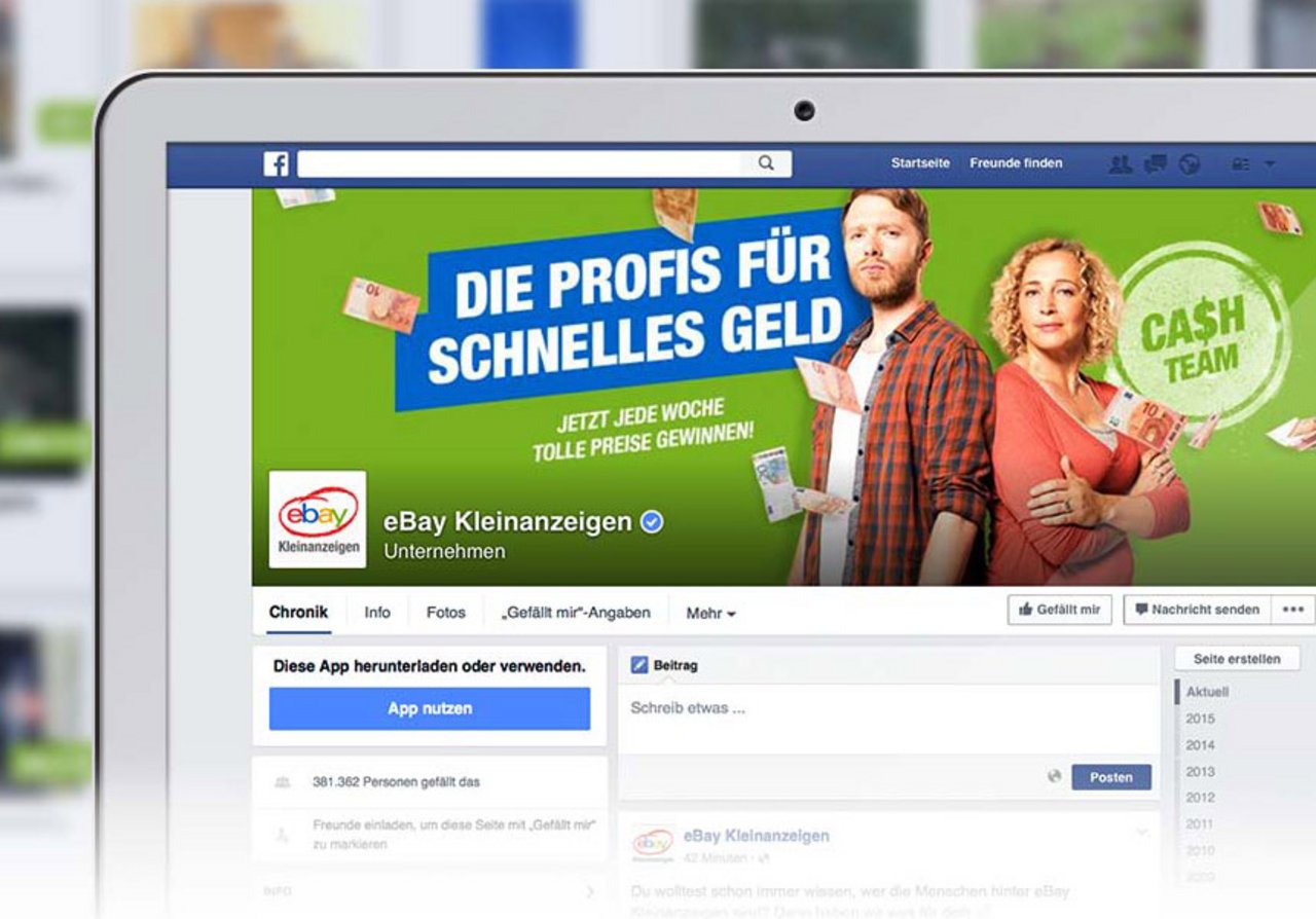 Neofonie entwickelte für die eBay Kleinanzeigen eine Facebook Applikation, die eine Verknüpfung der eingestellten Kleinanzeigen mit dem Facebook Account erlaubt. Dadurch können nicht nur Kleinanzeigen auf Facebook dargestellt werden, sondern erlaubt auch die Interaktion mit Freunden und Freundesfreunde. Zugleich kann ein Newsletter mit eingestellten Angeboten an eigene Freunde versendet werden und die persönlichere Interaktion zwischen Verkäufer und Käufer über Facebook vorgenommen werden.