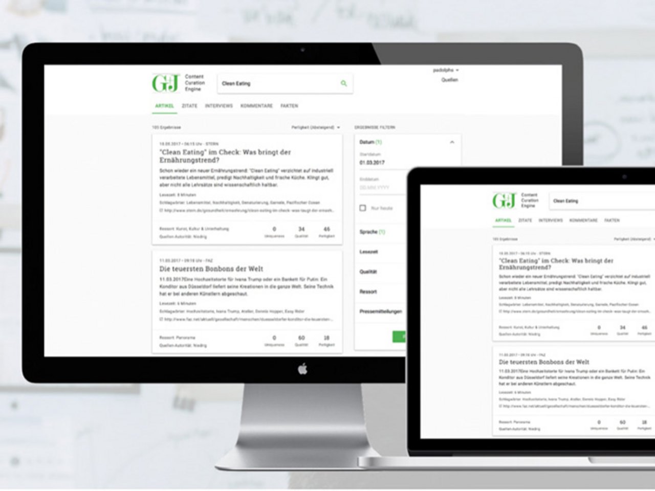 Neofonie hat eine “Content Curation Engine” entwickelt, die Redakteuren als Recherchetool dient. Die Engine verarbeitet und analysiert Daten aus rund 1.500 Web-Quellen, die angebunden und gecrawlt werden. Anhand von ausgewählten Kriterien werden redaktionell relevante Beiträge herausgefiltert und den Redakteuren ausgespielt. Für die Texterkennung und Klassifizierung kommen NER- und semantische Verfahren zum Einsatz, die Entitäten automatisiert erkennen, Informationen extrahieren und die Dokumente bestimmten Themenbereichen zuordnen.