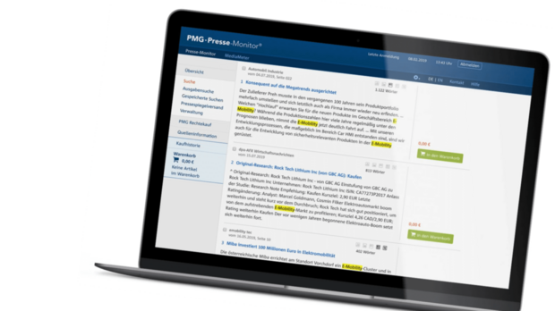 Eine saubere und unkomplizierte Überführung aller Nutzer mit optimaler Betreuung durch die Berater der PMG standen von Beginn an im Fokus der Bemühungen. Die Benutzeroberflächen wurde auf zeitgemäße HTML5-Technologie umgestellt und zugleich die Usability deutlich erhöht. Vereinfachte Abläufe bei der Einrichtung und Verwaltung von Rechercheaufträgen und der Kontenführung erlauben eine effizientere Medienauswertung und helfen dem Nutzer durch eine intuitive Benutzerführung an sein Ziel. Um die Texte in der PMG Pressedatenbank schnell und effizient analysieren und zur weiteren Verwertung nutzbar zu machen, wurde eine grundlegende Überarbeitung der Suche vorgenommen. Insbesondere die Möglichkeit, zunächst die Relevanz des Artikelinhalts zügig bewerten zu können, steht im Vordergrund.