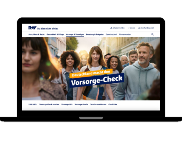 Mit dem Vorsorge-Check bietet die R+V Versicherung seit Mai 204 einen ganzheitlichen Check an, welcher informativ zu einer Rundum-Absicherung der User beiträgt. Dabei wird über einen Fragekatalog der Ist-Stand des Users im Bereich Erwerbsfähigkeit, die Gesundheitsvorsorge und die Zukunftsvorsorge ermittelt und Versorgungslücken aufgedeckt. Informativ werden passende Versicherungen inklusive Produktinformationen angezeigt, die als PDF heruntergeladen werden können oder die Möglichkeit geboten, einen Berater zu kontaktieren, digital, telefonisch oder vor Ort.