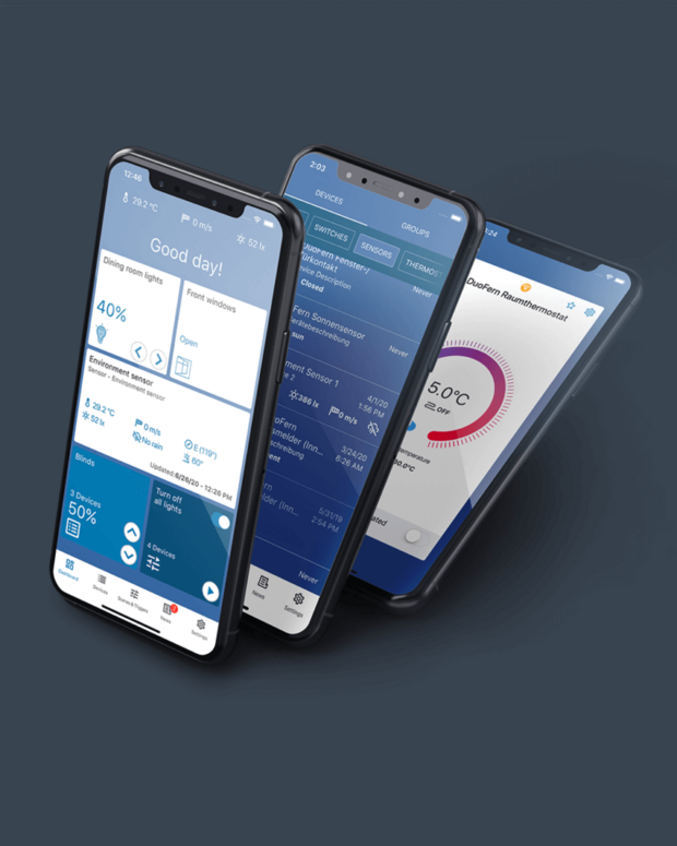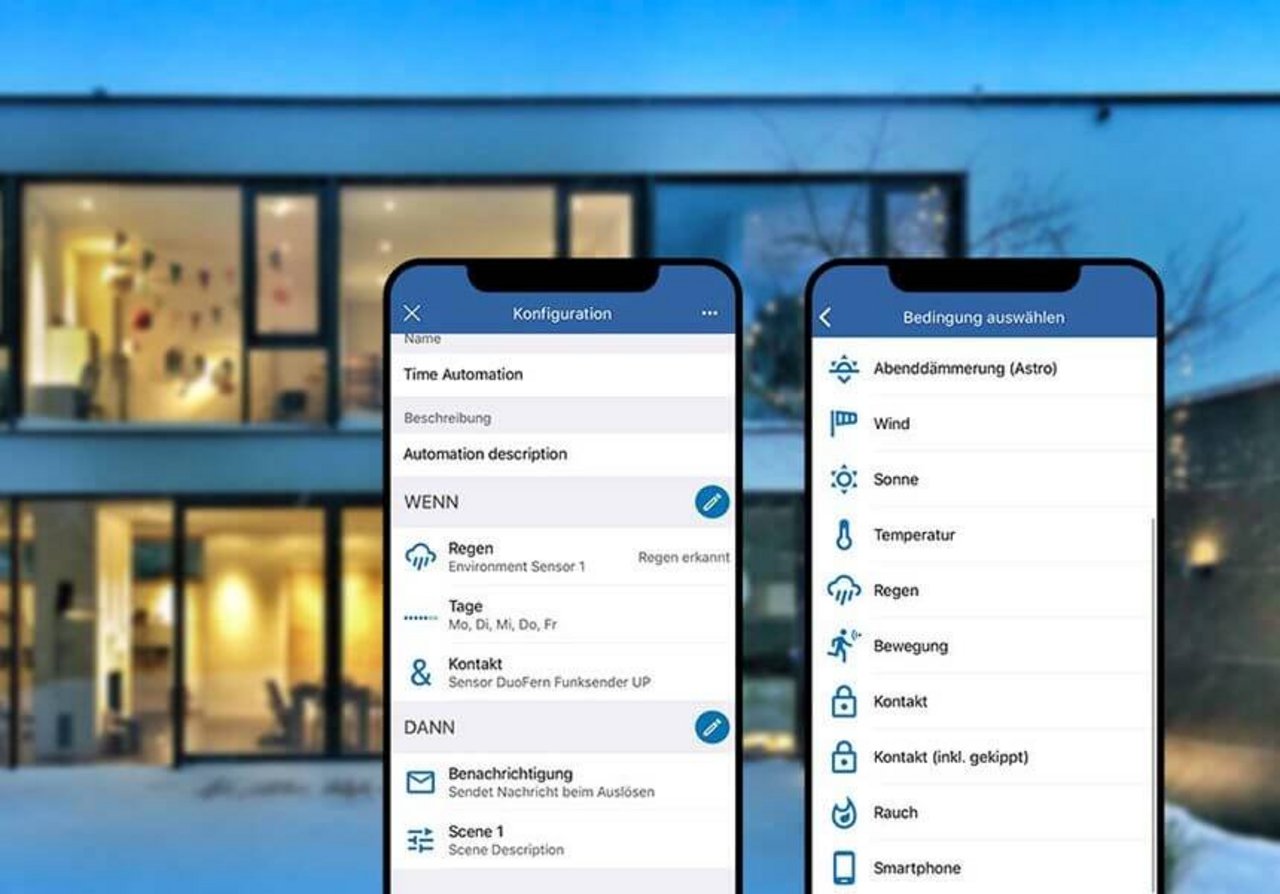 Neben der bisherigen Bedienung der Geräte über die App, lassen sich mit der neuen Version 5 die einzelnen Geräte nun auch ganz individuell konfigurieren. Dabei wurden über 360 Geräteeinstellungen berücksichtigt, die auf kleinstem Bildschirm verständlich und aufgeräumt präsentiert werden. Zahlreiche Kombinationen aus Sonnenstand und -winkel, Uhrzeit und Windstärken ergeben eine Vielzahl an Einstellungsmöglichkeiten, um automatisierte Prozesse für das intelligente Zuhause zu schaffen.