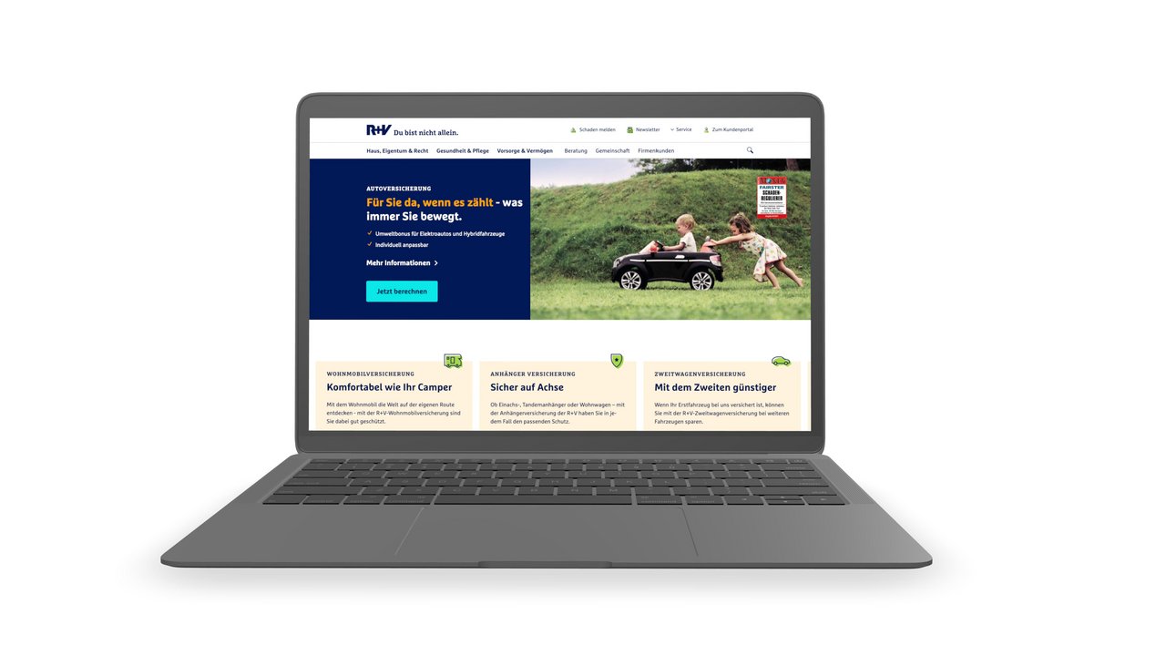 Die R+V Versicherung zählt mit 8,6 Millionen Kunden zu den größten Versicherern Deutschlands. Als Teil der Genossenschaftlichen FinanzGruppe Volksbanken Raiffeisenbanken bietet die R+V ihren Kunden maßgeschneiderte, innovative Versicherungslösungen.