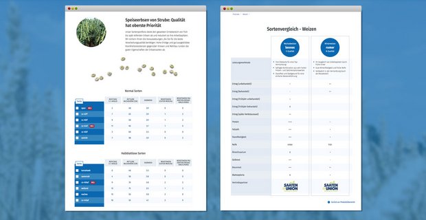 Die neue Website unter strube.net stellt die fünf Fruchtarten Zuckerrüben, Weizen, Sonnenblumen, Speiseerbsen und Zuckermais in den Vordergrund. Der User findet neben einem Konfigurator, der die verschiedenen Sorten gegenüber stellt, zahlreiche Broschüren und Informationsblätter. Das Design wirkt sachlich, klar und modern. Die Basis der Website bildet das Content Management System TYPO3.
